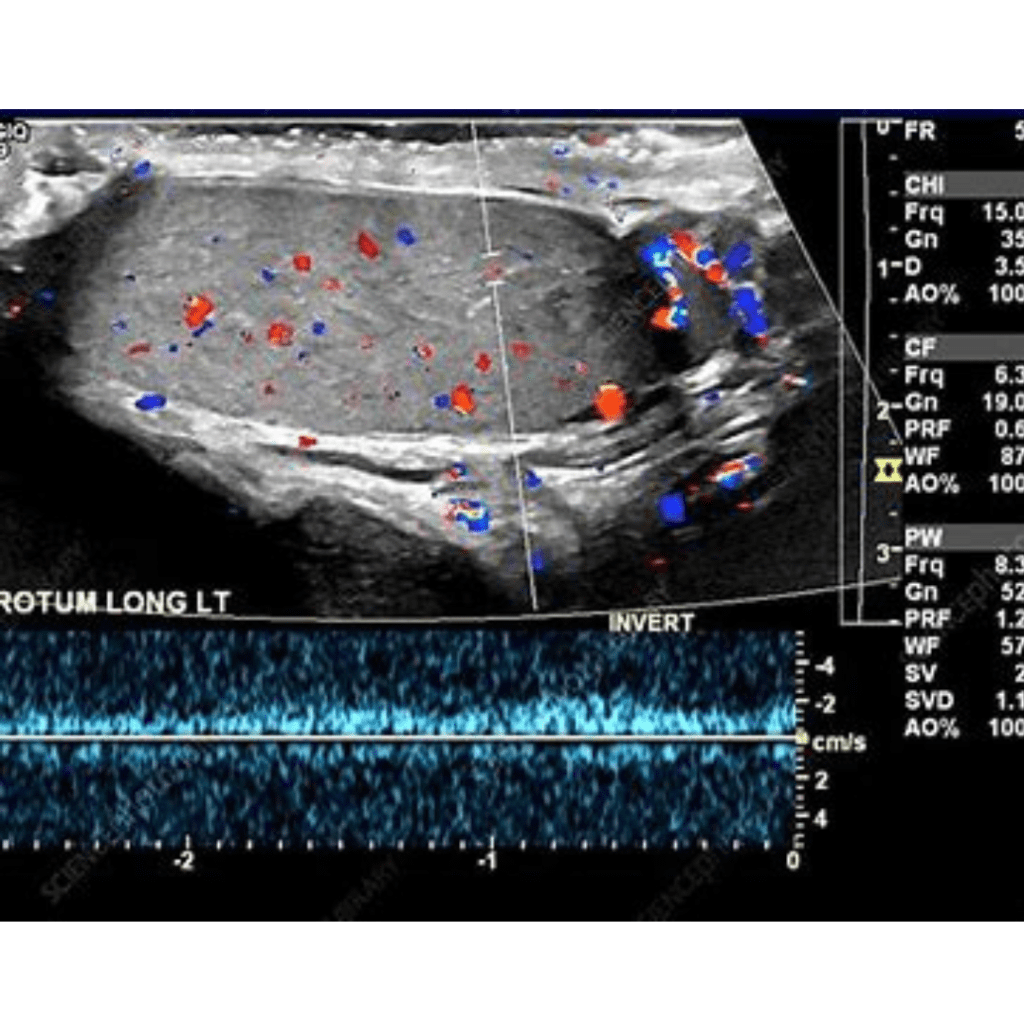 A testicular ultrasound is a non-invasive procedure that uses sound waves to create images of the testicles and surrounding structures in the scrotum. It is used to evaluate testicular masses, pain, swelling, or trauma.